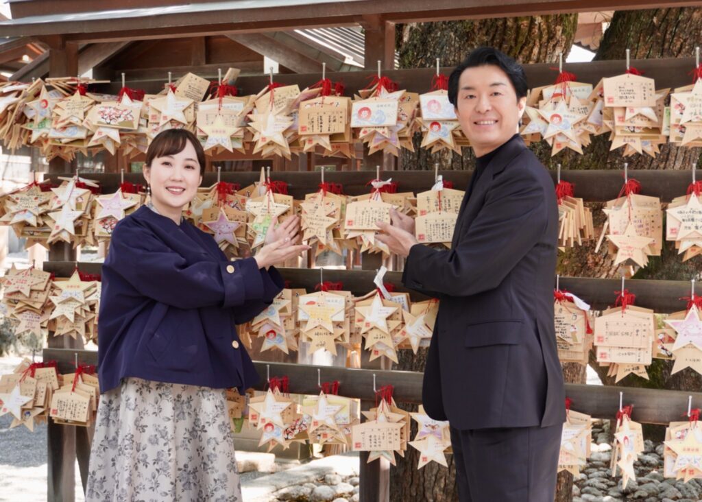 熱田神宮にて行われた成功祈願には、オペラ座の怪人役の岩城雄太さんとクリスティーヌ・ダーエ役の奥平光音さんが登場。『オペラ座の怪人』名古屋公演の成功を祈願し、それぞれの願いを書いた絵馬を奉納しました。
