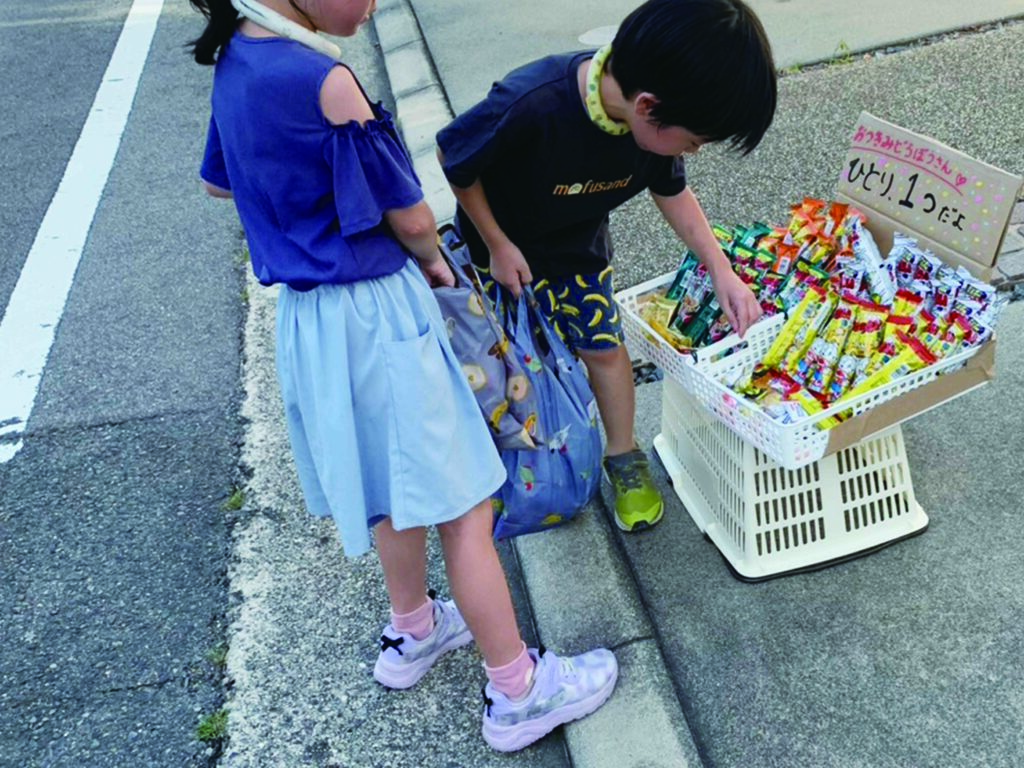学校から帰った子どもたちは、リュックや袋を手に「やったー!」「あった!」と笑顔でお菓子を見つけてまわります。声をかけ合うわけではないけれど、子どもたちの楽しそうな声と、それを見守る地域のあたたかさが夕暮れの空気に広がります。