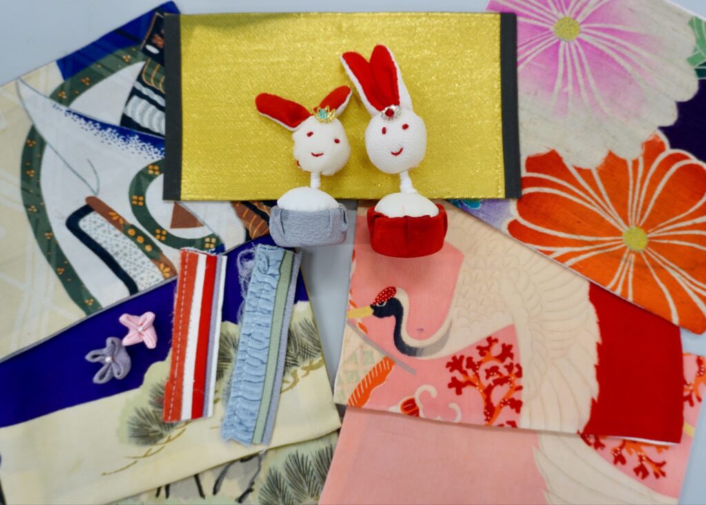 晴れ着を使ったうさぎの親王飾り