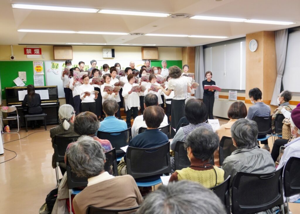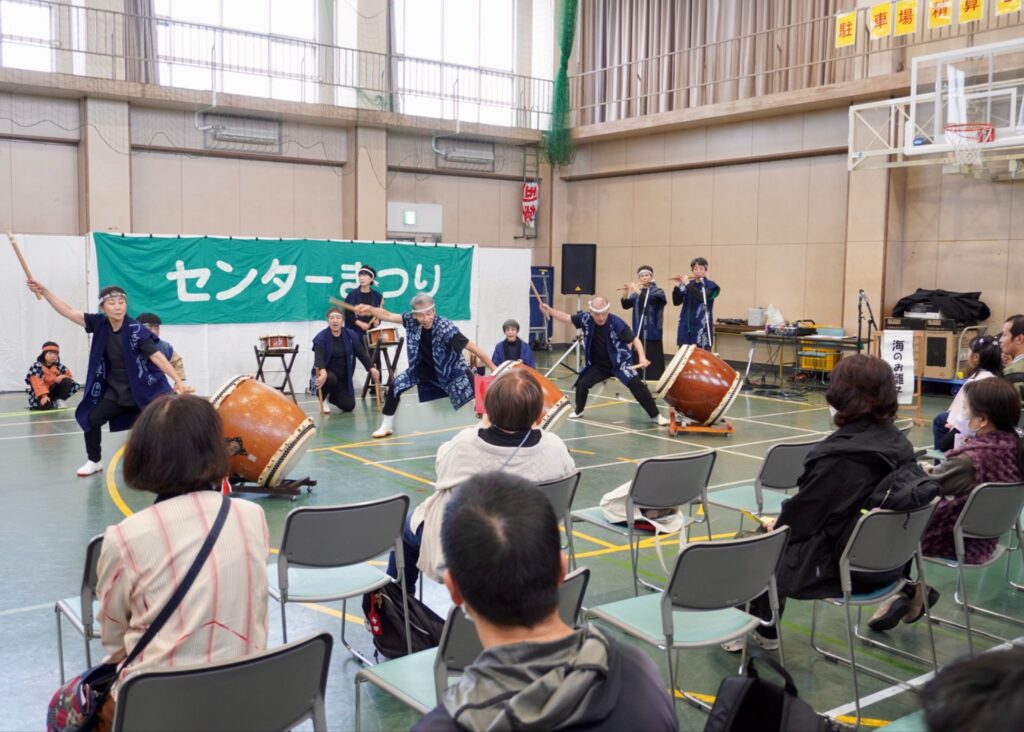 視聴覚室では、コーラス同好会「なはてぃがる」が美しいハーモニーを届け、来場者は伸びやかな歌声に聞き入っていました。体育室では「美土里フォークス」が和太鼓とソーラン節を披露し、会場中に力強い音が響き渡りました。