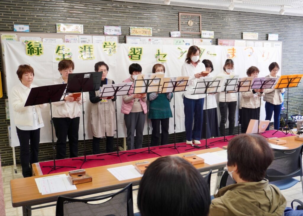 緑生涯学習センターでは、11月15日と16日の両日に「緑生涯学習センターまつり」を開催し、同センターで活動する多くの団体が日ごろの練習や活動の成果を発表しました。会場には600人を超える来場者が訪れ、団体の発表や有松絞りなどの展示、遊字アートなどの体験に、興味を持って楽しむ人たちの姿が見られました。
